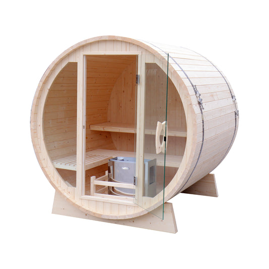 Premium Cedar Barrel Sauna | Glass Front Outdoor Sauna