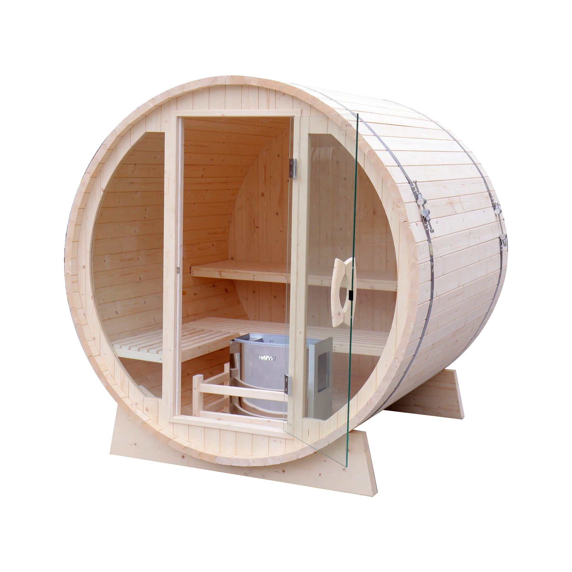Immerse yourself in relaxation with the Glass Front Barrel Sauna, a fusion of traditional craftsmanship and modern design. Constructed from premium natural pine wood, this sauna features a tempered glass front, offering an open and airy feel while maintaining excellent heat insulation. Its efficient barrel shape ensures consistent heat distribution for a rejuvenating sauna experience.