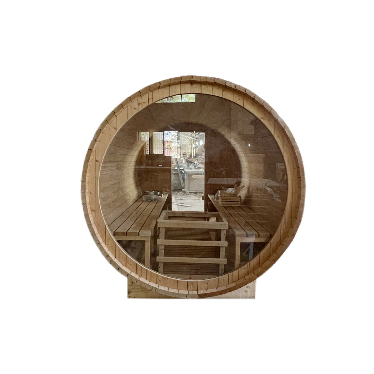 Enjoy the perfect balance of tradition and modernity with this Classic Barrel Sauna. Its iconic barrel design ensures optimal heat circulation, while the glass front and back panels create a spacious and open feel. Perfect for both private relaxation and social gatherings, this sauna is available in multiple sizes to accommodate 2 to 5 people.