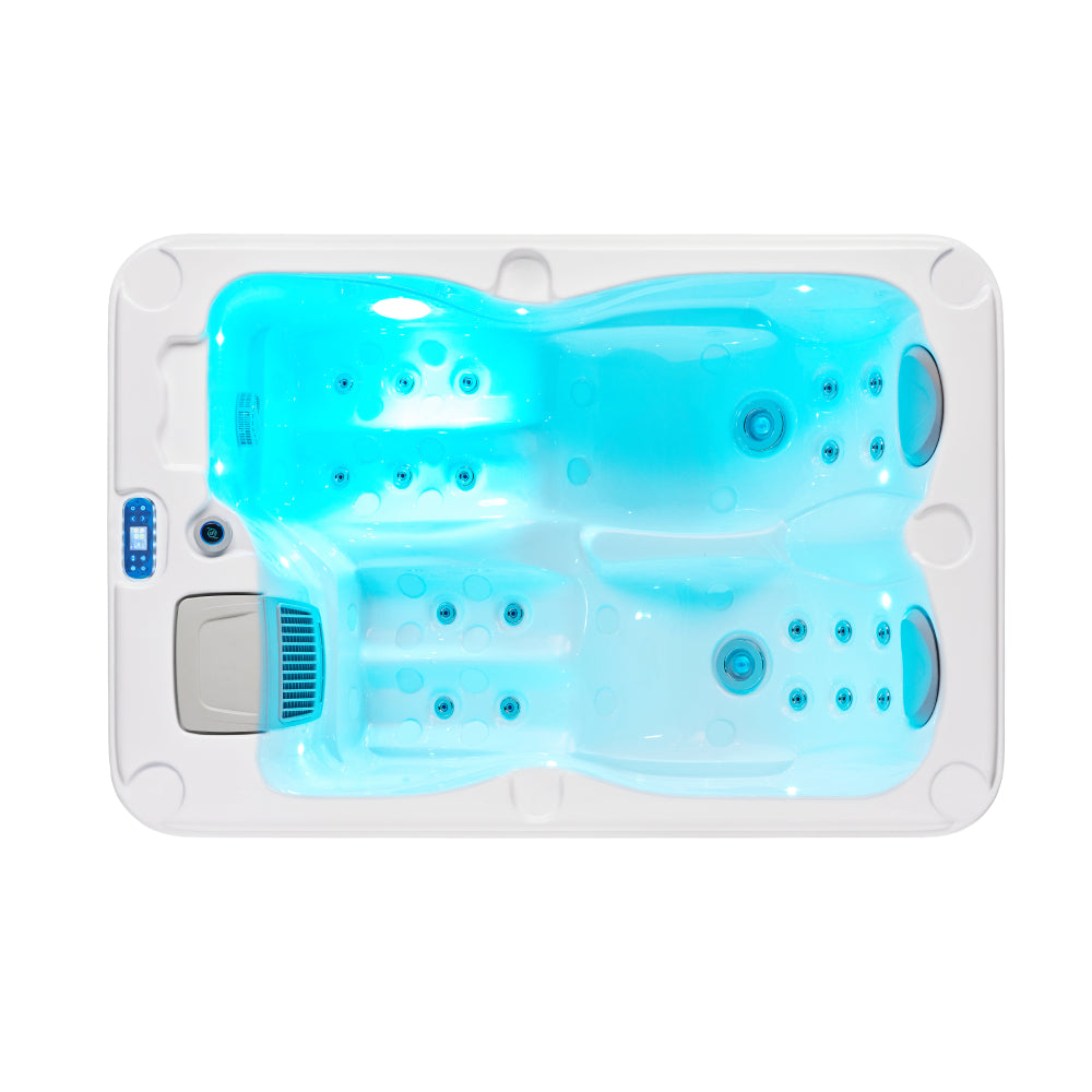 The tub is equipped with a durable aluminum plastic skirt and 15mm PU insulation for energy efficiency and long-lasting performance. Enjoy the soothing ambiance created by 10 small LED lights and a bottom light, while the built-in ozone system ensures clean, purified water.